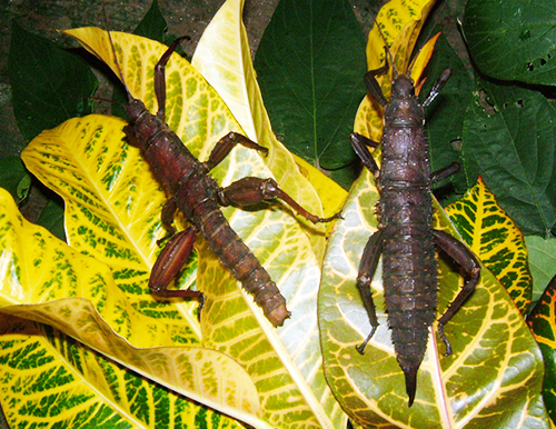 雄蟲身長約85-95 mm 雌蟲身長約 120-140 mm !白天喜歡在躲在樹皮與石頭下,所以我們建議您可以去拿一個椰子殼(買椰子汁砍一個洞的即可,洞至少三公分以上)放入飼養箱中,飼養底材保持濕潤!但不可發霉!!!雄性很有領域性, 當雄性感到威脅受到干擾時,他們將站穩前腿,並抬起他的後腿在空中,利用大腿內部的大刺保護自己,它會把它的腿對齊,用力捕捉到兩後腿之間的任何東西。若抓住你的手可能非常痛苦,甚至破皮流血!所以要確保遠離雄性的後腿。